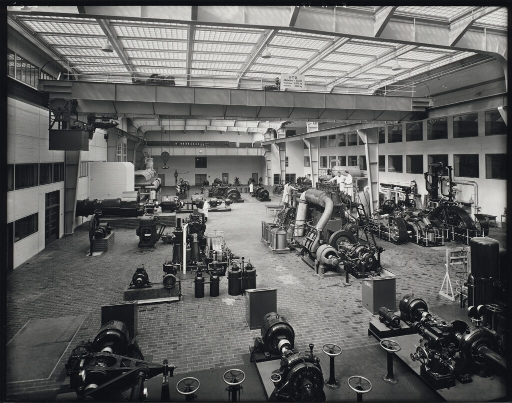 Maschinenhalle im Maschinenlaboratorium (ML), ca. 1935 Foto: ETH-Bibliothek Zürich, Bildarchiv / Ans_00916 / Fotograf/-in unbekannt